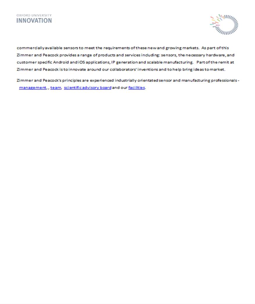ZIMMER PEACOCK LICENCE MORE COMPTON GROUP SENSORS